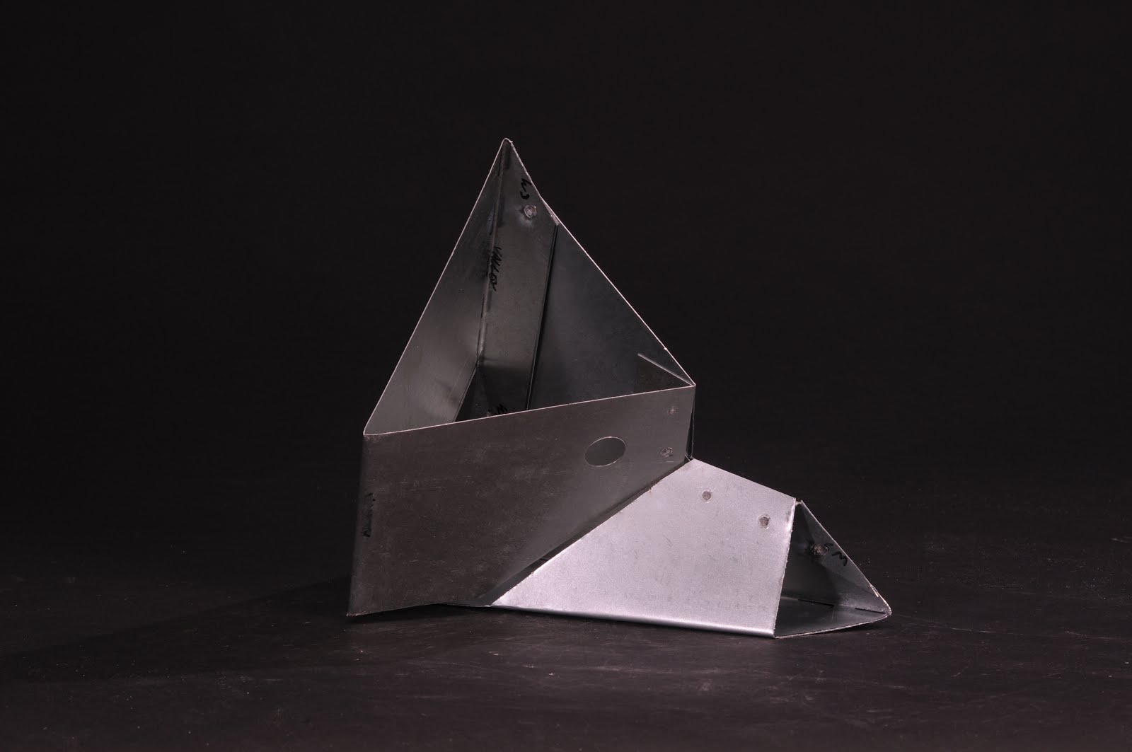 Also inspired by the primitive shapes, we made a sheet metal model of a shape that had been sliced to create voids and compartments within the shape. I picked the tetrahedron and sliced it twice to create an L-shaped piece.